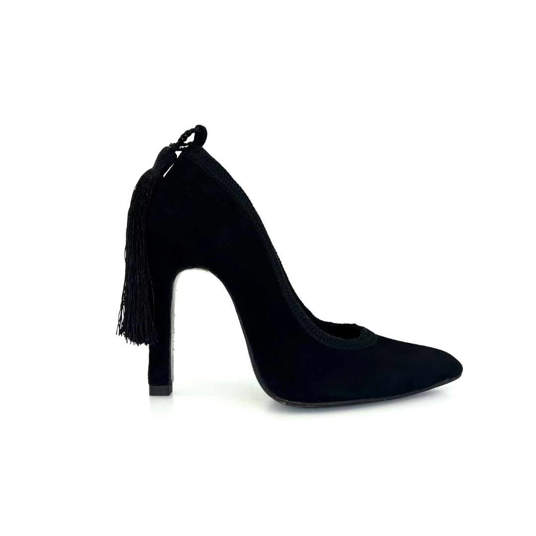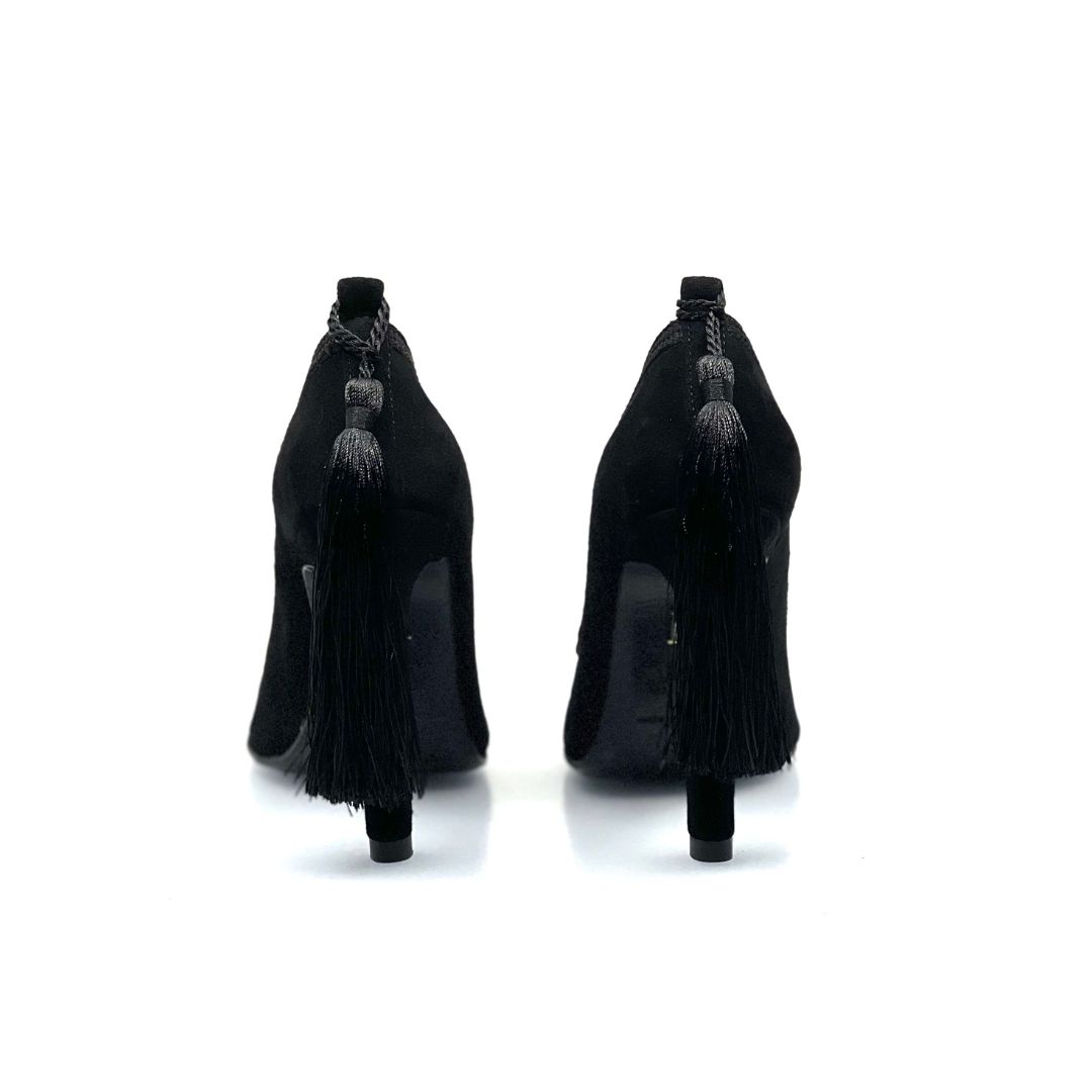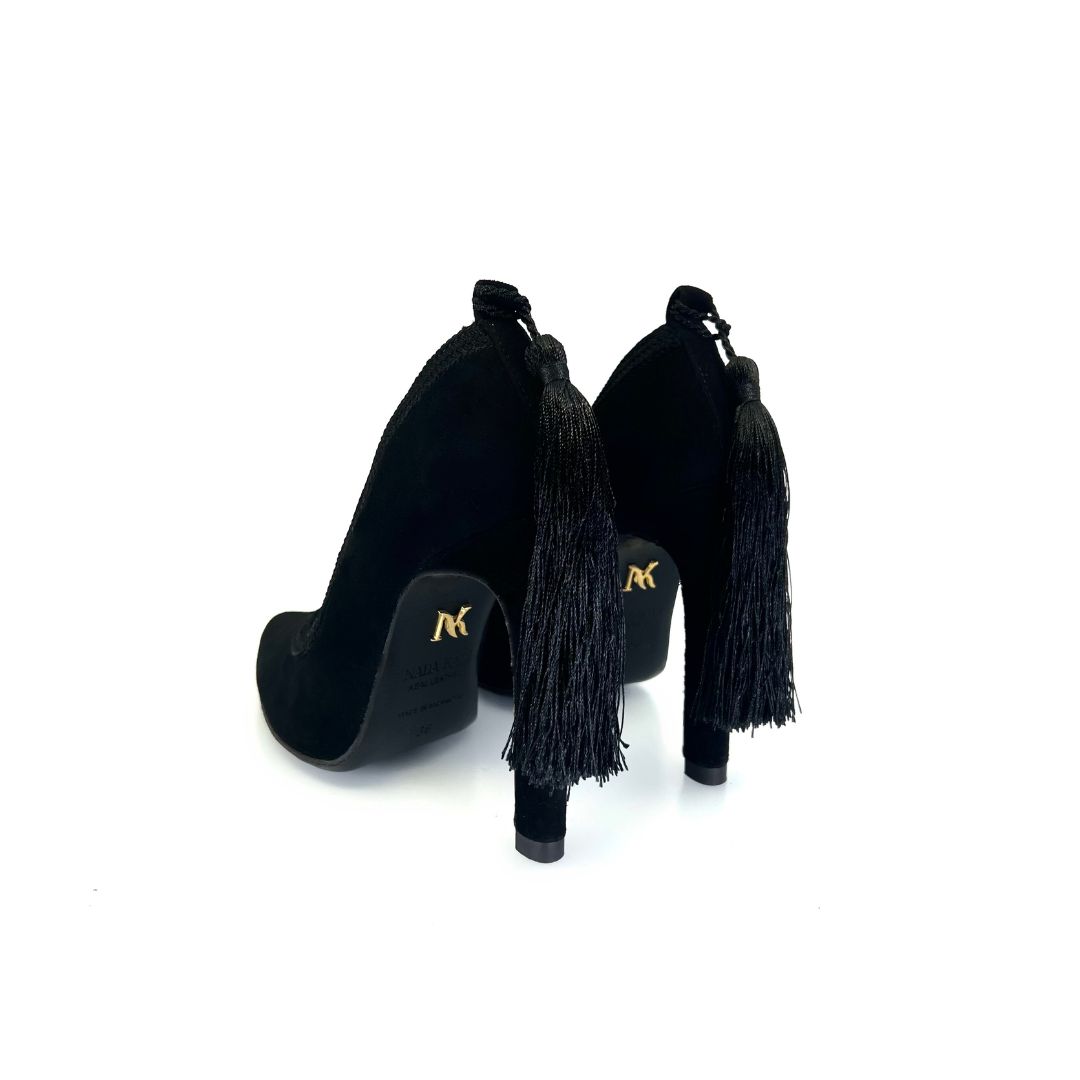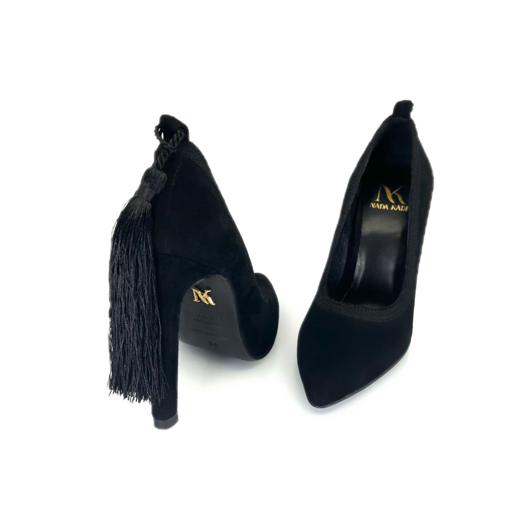 Embellished by Moroccan Sfifa and dragging a long Choucha behind, ICONIC IMPERIAL pumps are proudly handcrafted by moroccan artisans from a velvet leather to sublimate your day and evening looks with its distinctive details.